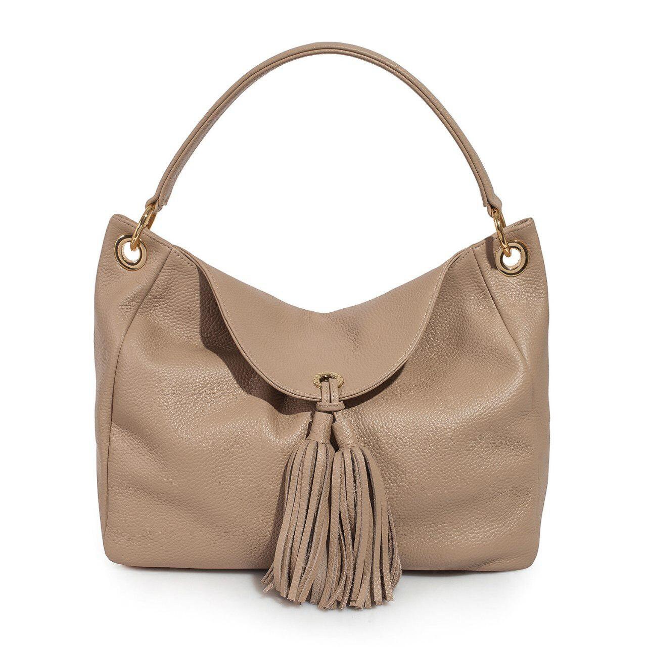 Leather Hobo Bag, Beige Leather Hobo Bag, Women's Leather Hobo Purse KF-3001