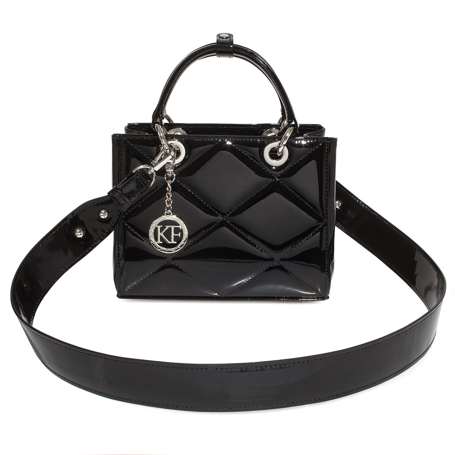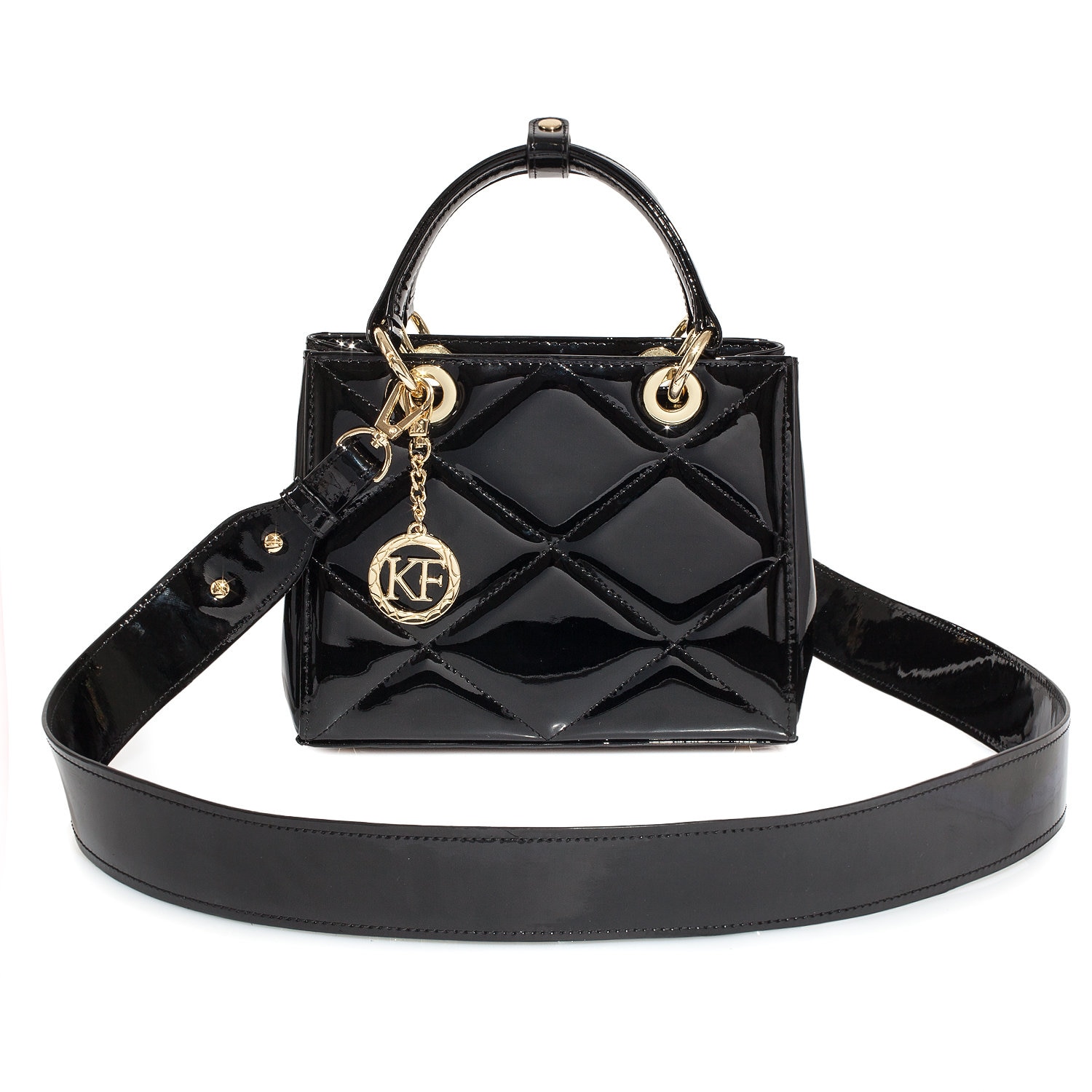 Leather Top Handle Bag, Black Patent Leather Handbag Top Handle, Women's Leather Bag KF-4486