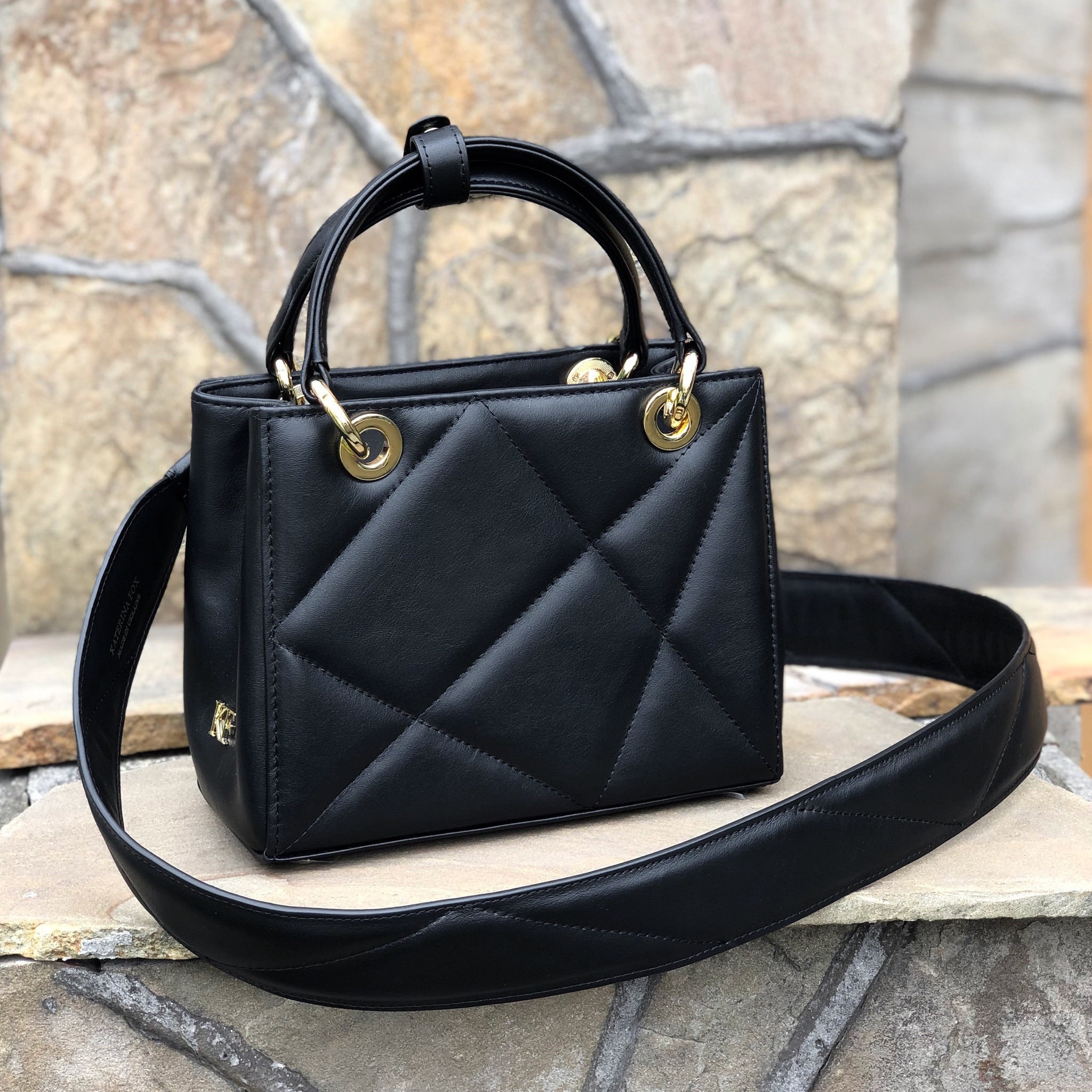 Leather Top Handle Bag, Black Leather Handbag Top Handle, Women's Leather Bag KF-4047