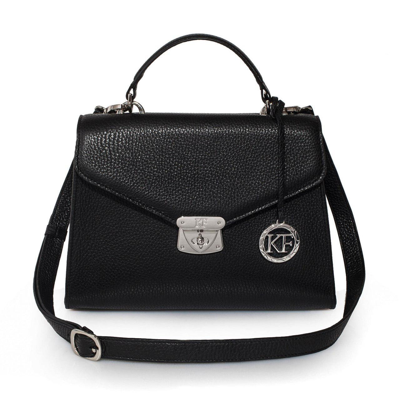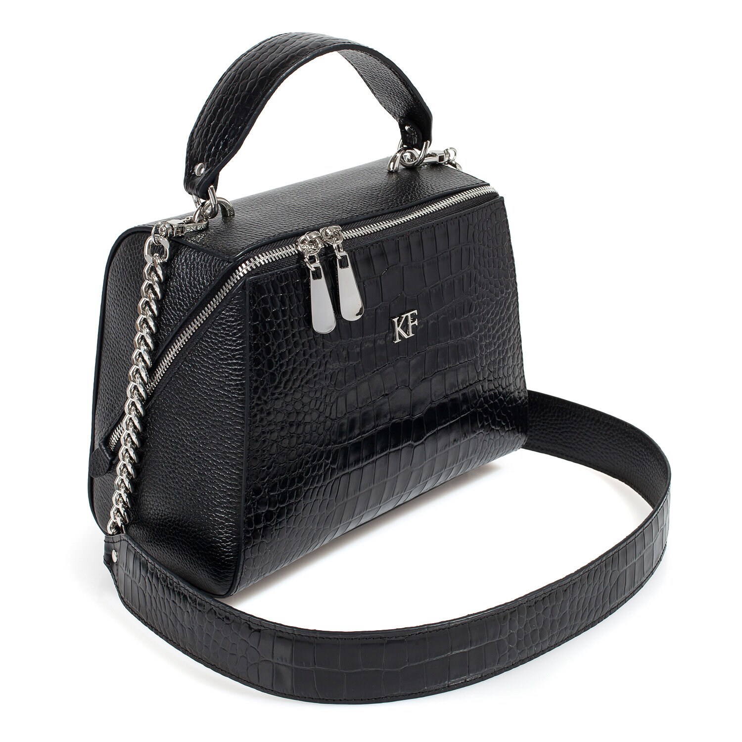 Leather Top Handle Bag, Black Leather Handbag Top Handle, Women's Leather Bag KF-3323