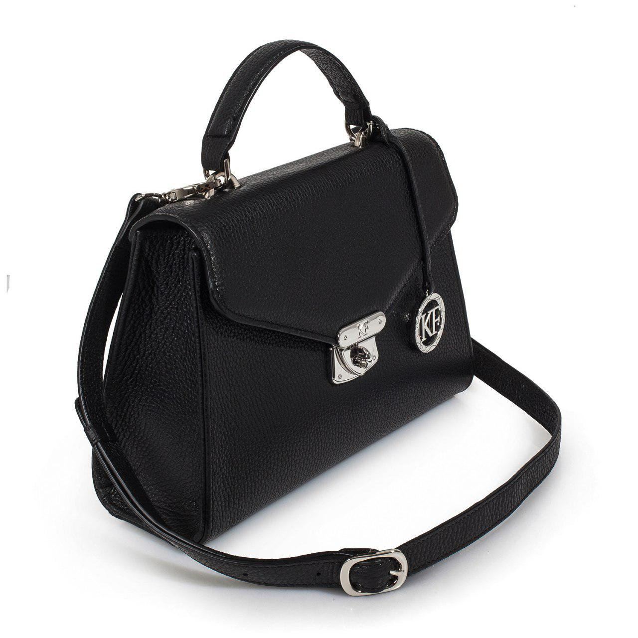 Leather Top Handle Bag, Black Leather Handbag Top Handle, Women's Leather Bag KF-3105