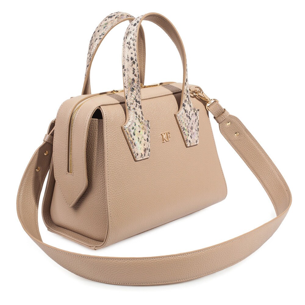 Leather Top Handle Bag, Beige Leather Handbag Top Handle, Women's Leather Bag KF-3615