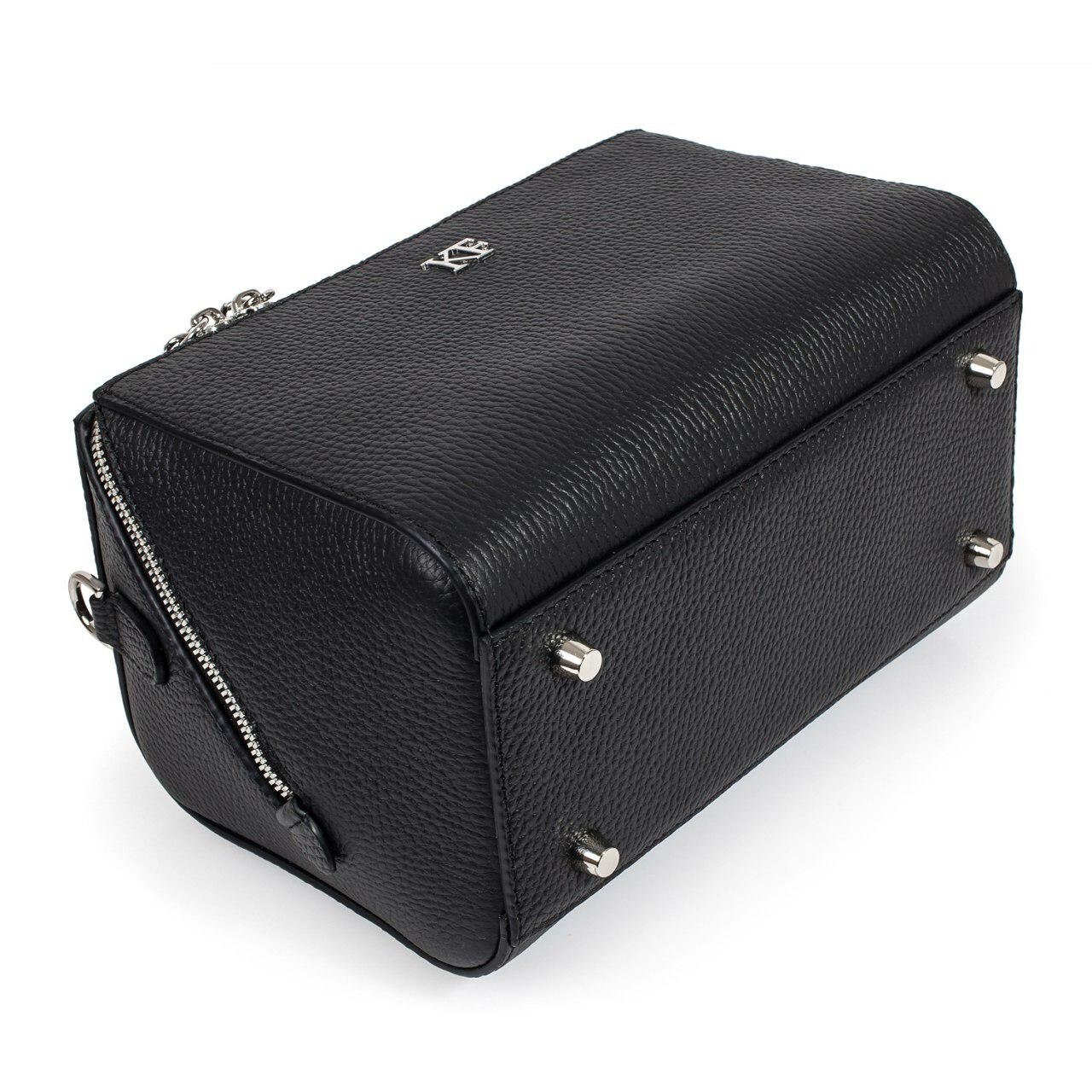 Black genuine leather woman shoulder bag from ukrainian designer Katerina Fox. Fashionable and elegant modern bag KF for bright girls and women. This bag is able to attract attention and highlight your exquisite taste. The internal space of a bag is equipped with one spacious compartment and one zipper pocket. The bag is closed with a zipper. The length of the strap is adjustable. The kit also includes a storage bag.