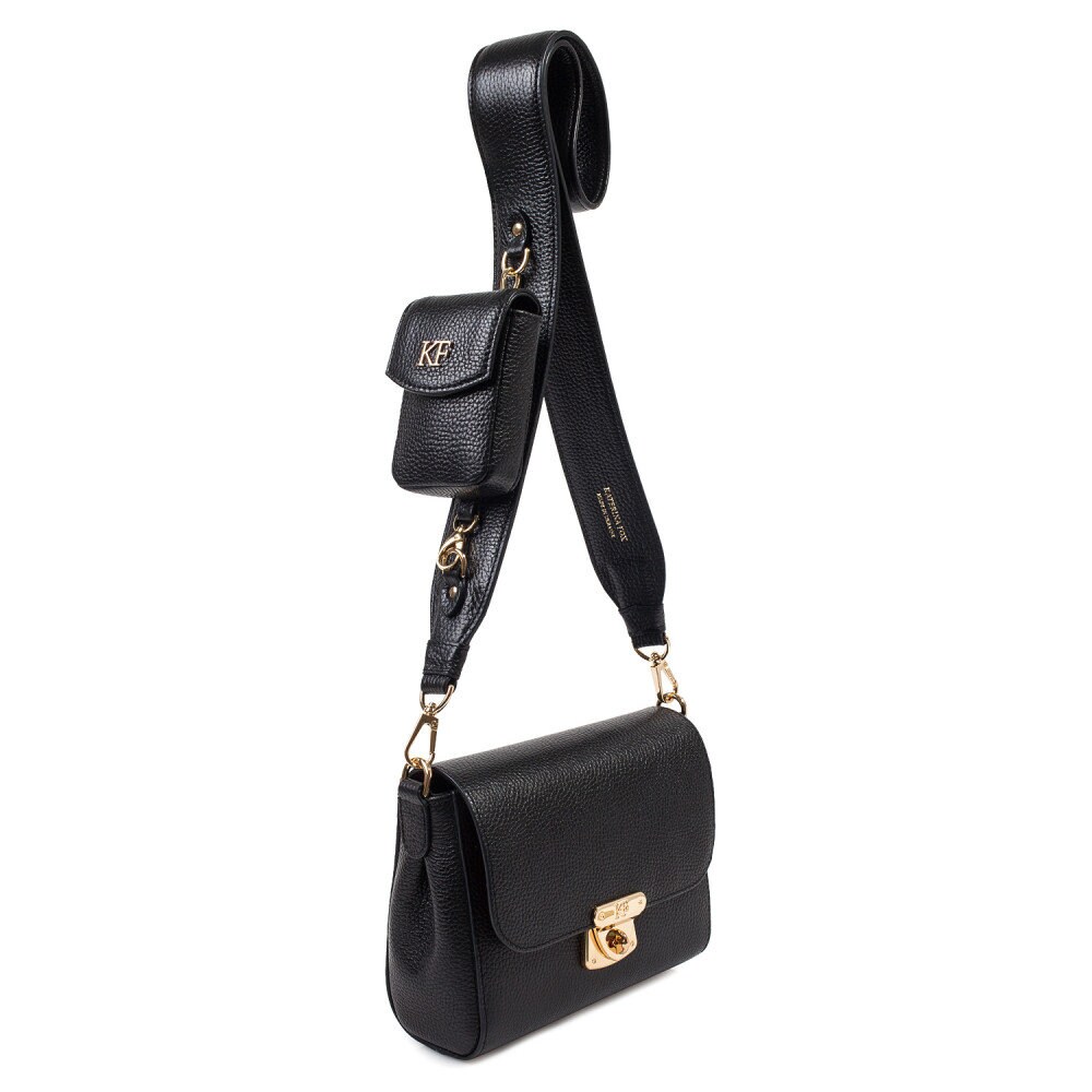 Black genuine leather woman shoulder bag from ukrainian designer Katerina Fox. Fashionable and elegant modern bag KF for bright girls and women. This bag is able to attract attention and highlight your exquisite taste. Inside the bag is one large compartment and a convenient zippered pocket for small items, closes the bag on the clasp. The bag is comfortable to wear on the shoulder or across the shoulder. If you are planning to buy excellent leather bag at an affordable price, this handbag is the right choice!