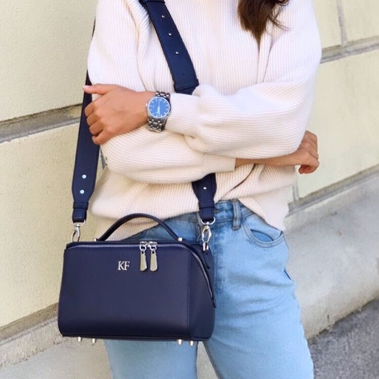 Leather Cross body Bag, Blue Leather Shoulder Bag, Women's Leather Crossbody Bag, Leather bag KF-3074