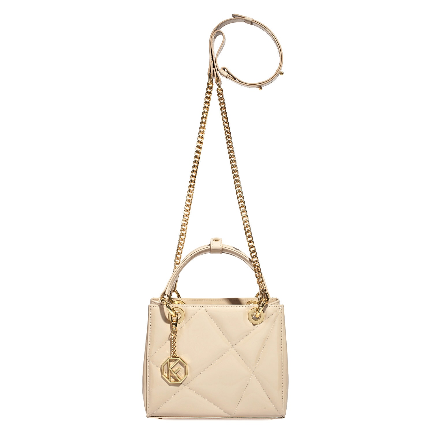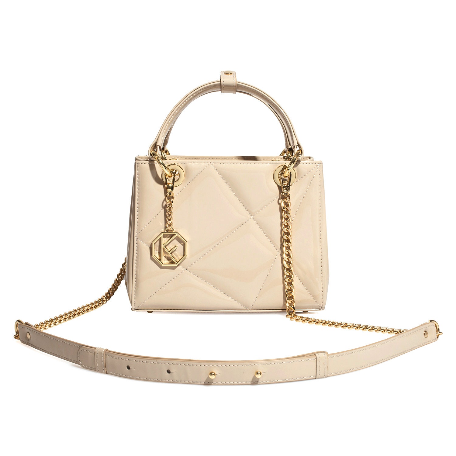 Leather Top Handle Bag, Beige Patent Leather Handbag, Women's Leather Bag KF-5048
