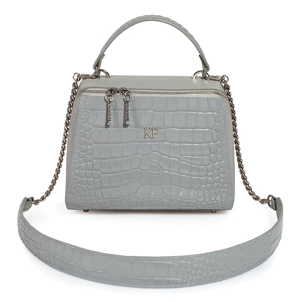 Leather Top Handle Bag, Gray Leather Handbag Top Handle, Women's Leather Bag KF-3512