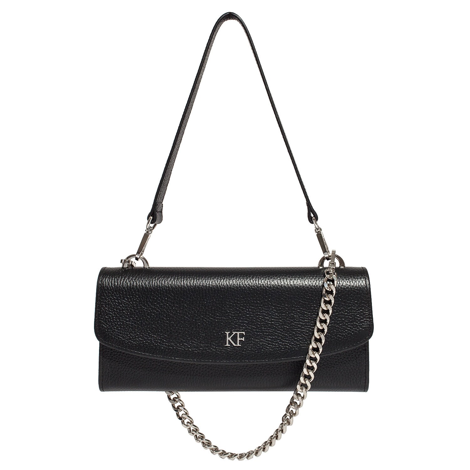 Black genuine leather woman shoulder bag from Ukrainian designer Katerina Fox. Fashionable and elegant modern bag KF for bright girls and women. This bag is able to attract attention and highlight your exquisite taste. Inside the bag is one compartment and a convenient zippered pocket for small items closes the bag on the button magnet. The bag is comfortable to wear on the shoulder or the wrist.
