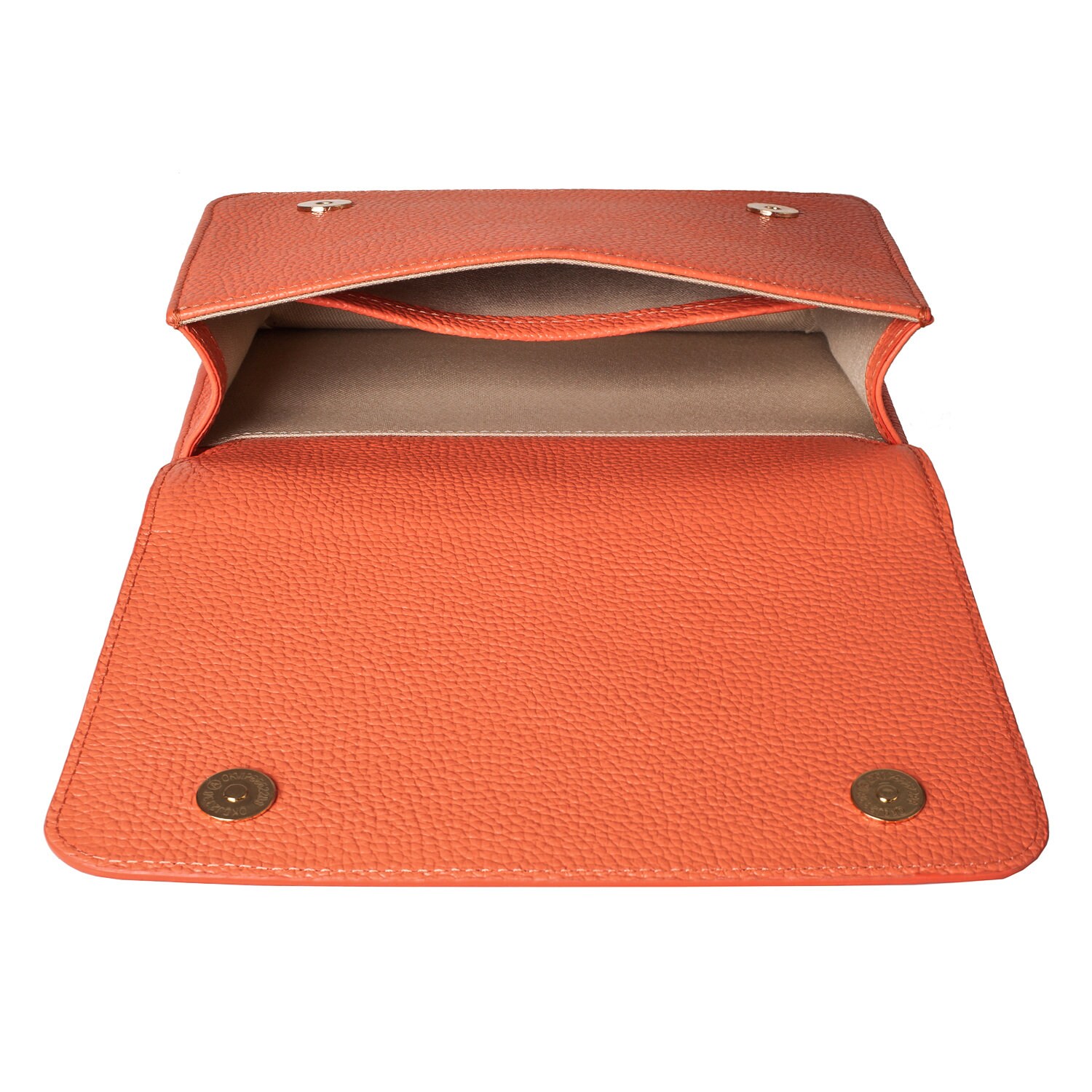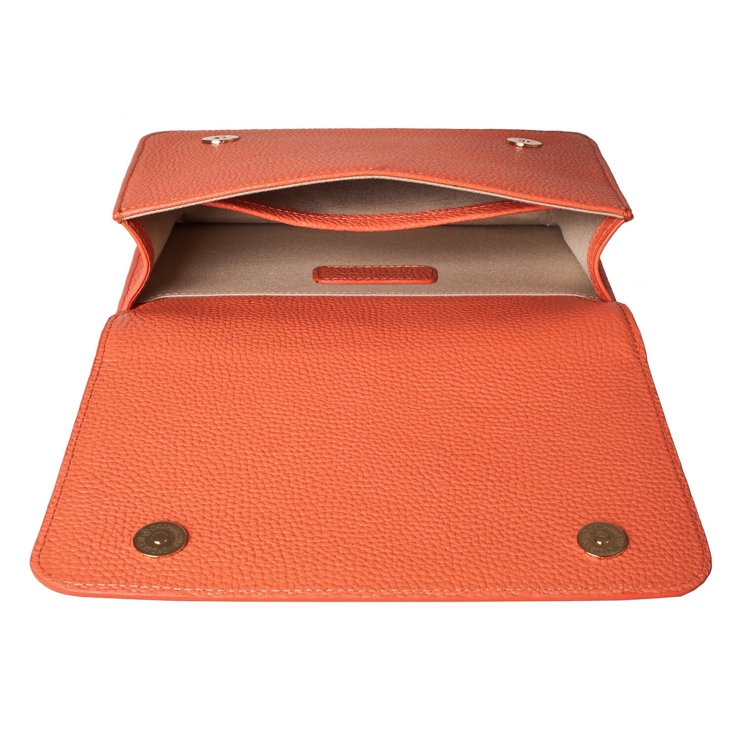 Coral bag on a chain made of genuine leather from Ukrainian designer Katerina Fox. This model is designed for women who value elegant design combined with functionality and comfort. High-quality and reliable equipment guarantees a long service life of bags. All accessories for bags Katerina Fox produces the same factory as for Michael Kors, Calvin Klein, DKNY and other well-known brands. Inside the bag there are two spacious compartments and two patch pockets, the bag closes with magnet buttons.