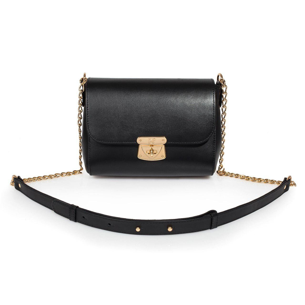 Black genuine leather woman shoulder bag from ukrainian designer Katerina Fox. Fashionable and elegant modern bag KF for bright girls and women. This bag is able to attract attention and highlight your exquisite taste. The internal space of a bag is equipped with one spacious compartment and one zipper pocket. The bag is closed with a zipper. The length of the strap is adjustable. The kit also includes a storage bag.