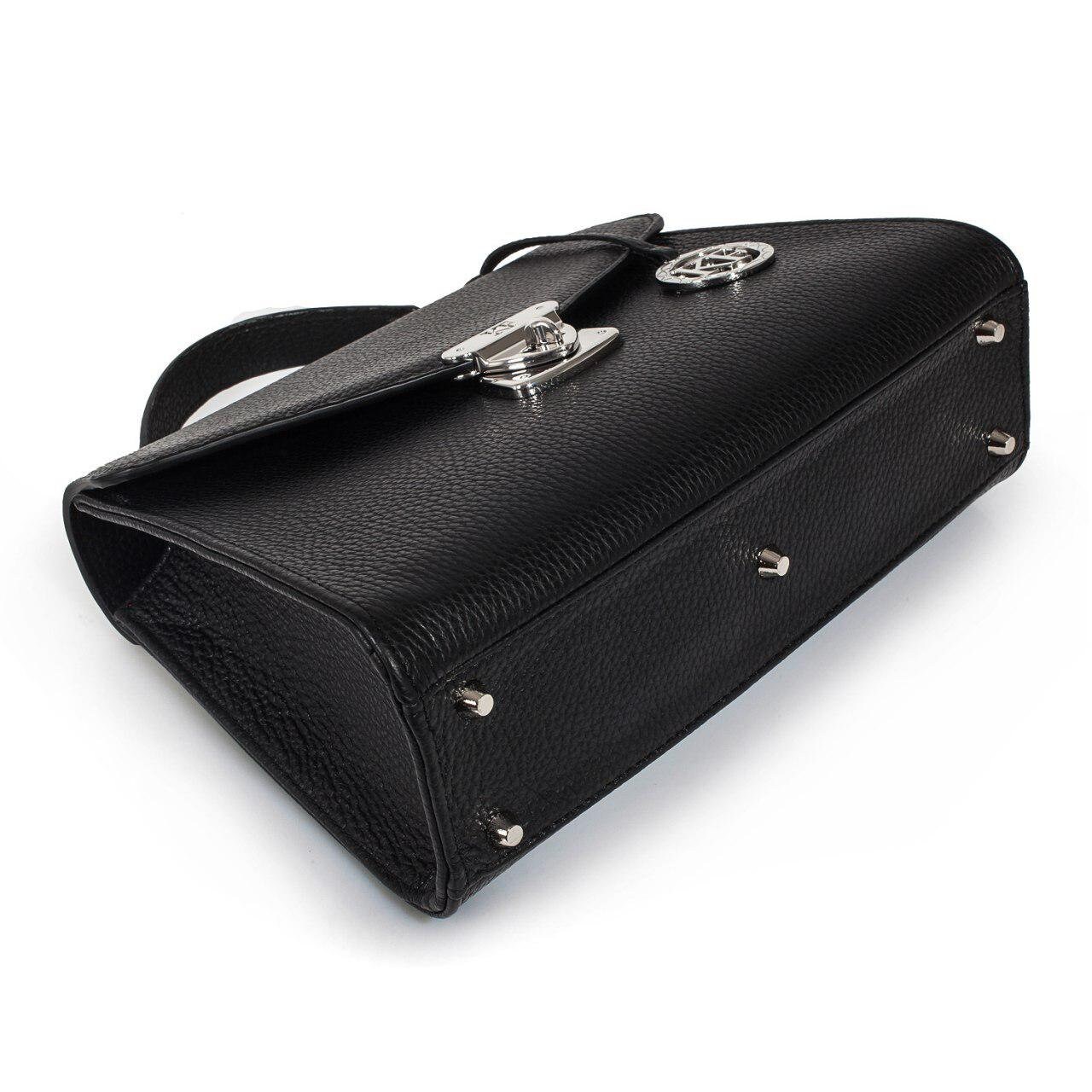 Delivery: In most cases our goods are shipped by FedEx or Ups Express. On rare occasions the goods might be shipped by Ukrposhta. The clients should check in advance an estimate of the amount of customs duty and value added tax. Black genuine leather handbag from ukrainian designer Katerina Fox. This model is designed for women who appreciate the sleek design combined with functionality and comfort. High-quality and reliable hardware ensure long service bags. The internal space of a bag is equipped with one spacious compartment and two patch-pockets and one zipper pocket. The bag is closed with a zipper. The bottom of the bag is protected with metal legs. There is a long handle that allows you to wear the bag on the shoulder. The kit also includes a storage bag.