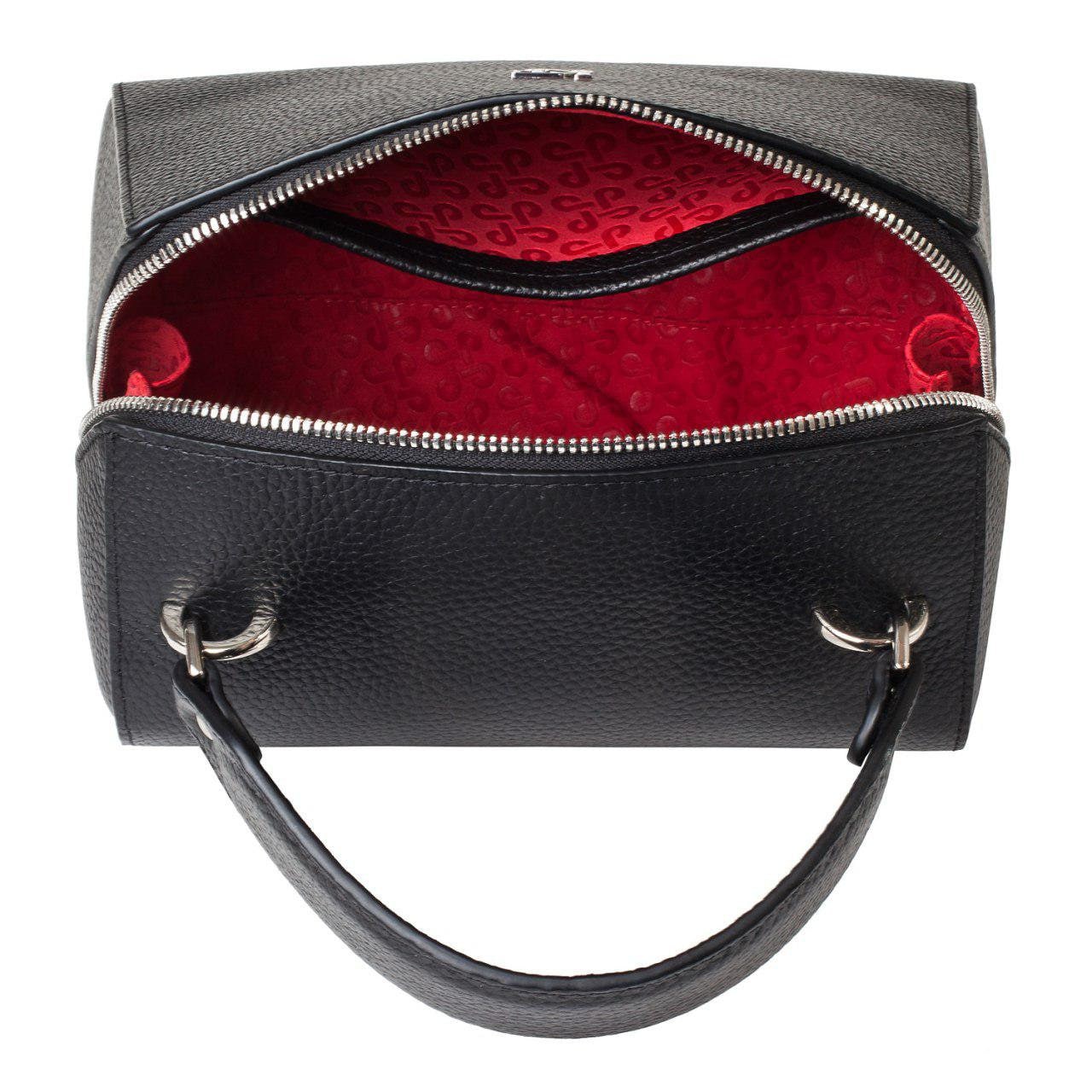 Black genuine leather handbag from ukrainian designer Katerina Fox. This model is designed for women who appreciate the sleek design combined with functionality and comfort. High-quality and reliable hardware ensure long service bags. The internal space of a bag is equipped with one spacious compartment and two patch-pockets and one zipper pocket. The bag is closed with a zipper. The bottom of the bag is protected with metal legs. There is a long handle that allows you to wear the bag on the shoulder. The kit also includes a storage bag.