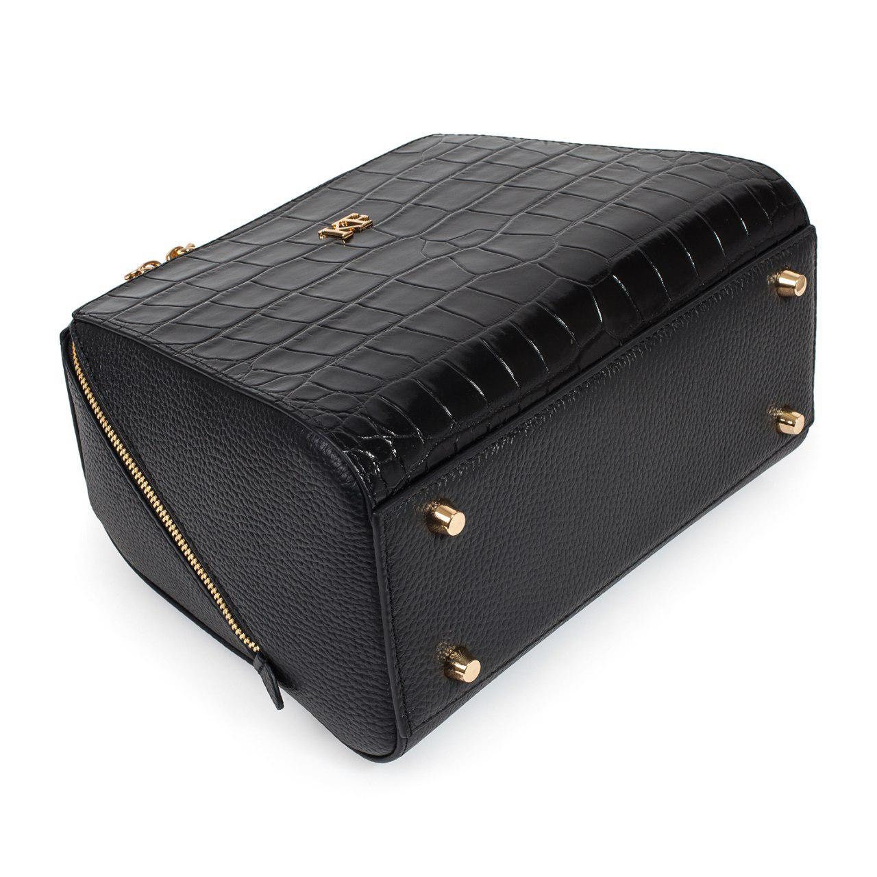 Black genuine leather handbag from ukrainian designer Katerina Fox. This model is designed for women who appreciate the sleek design combined with functionality and comfort. High-quality and reliable hardware ensure long service bags. The internal space of a bag is equipped with one spacious compartment and two patch-pockets and one zipper pocket. The bag is closed with a zipper. The bottom of the bag is protected with metal legs. There is a long handle that allows you to wear the bag on the shoulder. The kit also includes a storage bag.