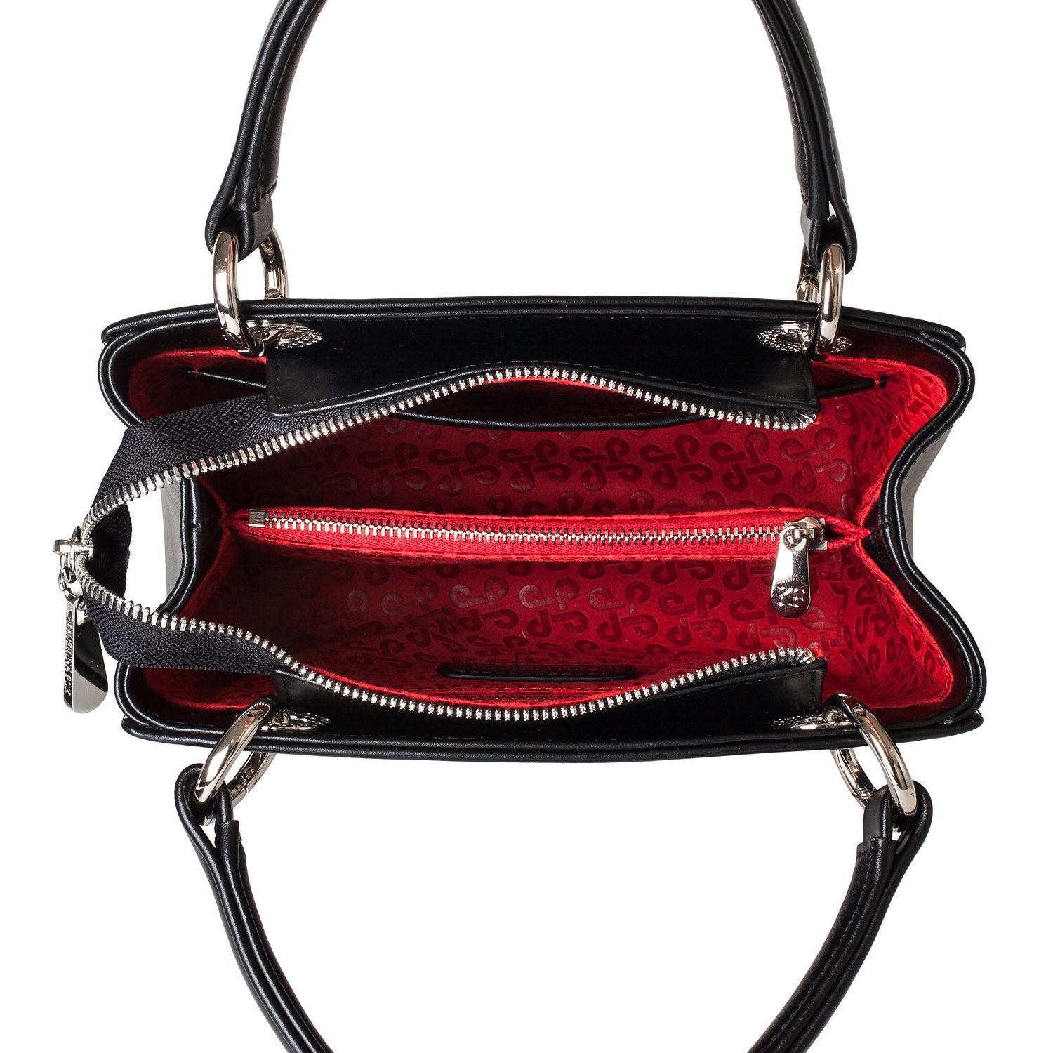 Delivery: In most cases our goods are shipped by FedEx or Ups Express. On rare occasions the goods might be shipped by Ukrposhta. The clients should check in advance an estimate of the amount of customs duty and value added tax.Black genuine leather handbag from ukrainian designer Katerina Fox. This model is designed for women who appreciate the sleek design combined with functionality and comfort. Despite the simplicity, this bag stands out thanks to a triangular insert in black suede leather. High-quality and reliable hardware ensure long service bags. Inside the bag are three spacious compartments, one with zip, two patch pockets and one zippered pocket closes with a zipper. The bottom of the bag protected by metal feet.
