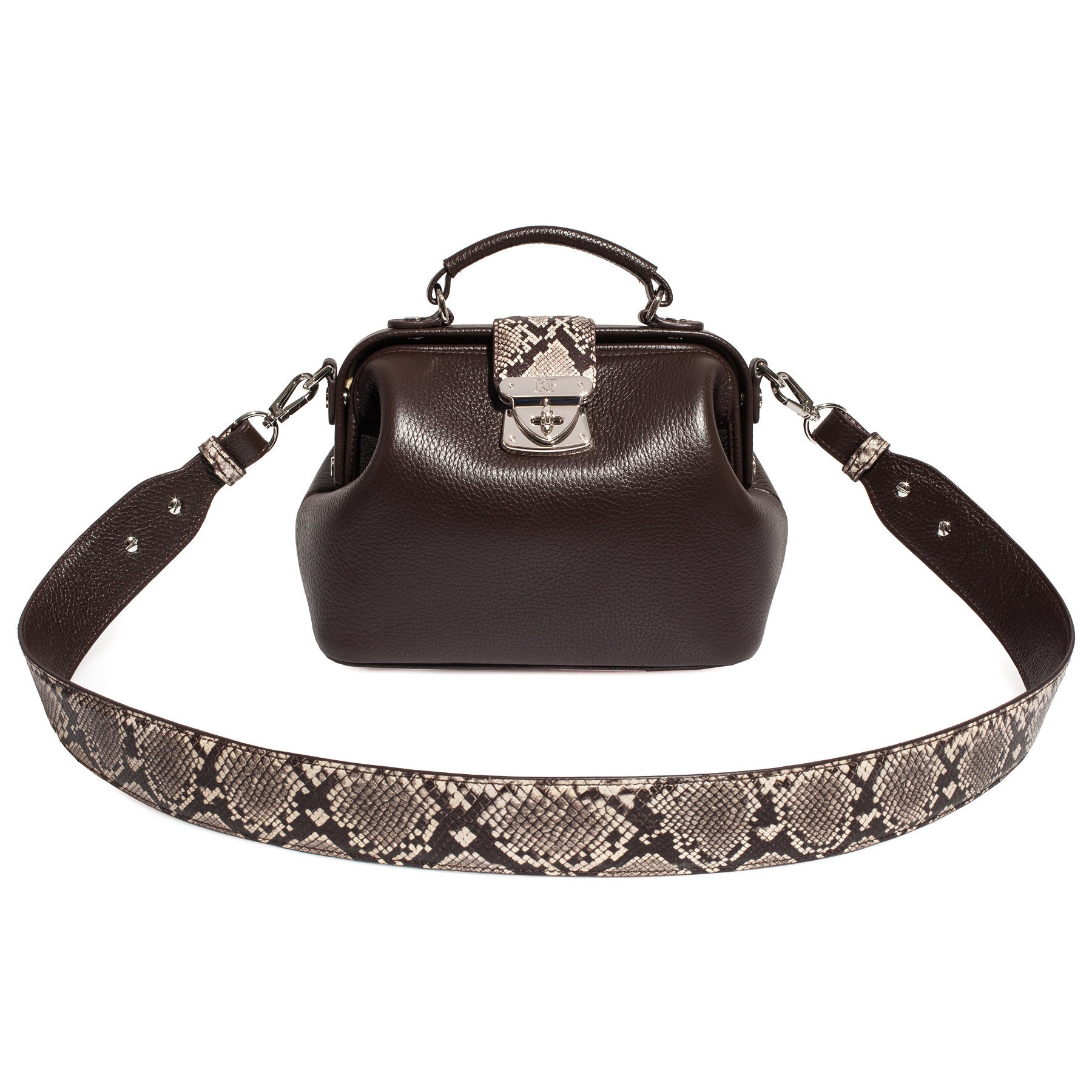 Women's leather bag made of genuine leather, hardware with galvanic coating and microfiber lining. The internal space of a bag is equipped with three compartments, one compartment and two side pockets, one with a zipper. §³loses with 3 magnet buttons. The bottom of the bag is protected with metal legs. There is a long handle that allows you to wear the bag on the shoulder. The kit also includes a storage bag.
