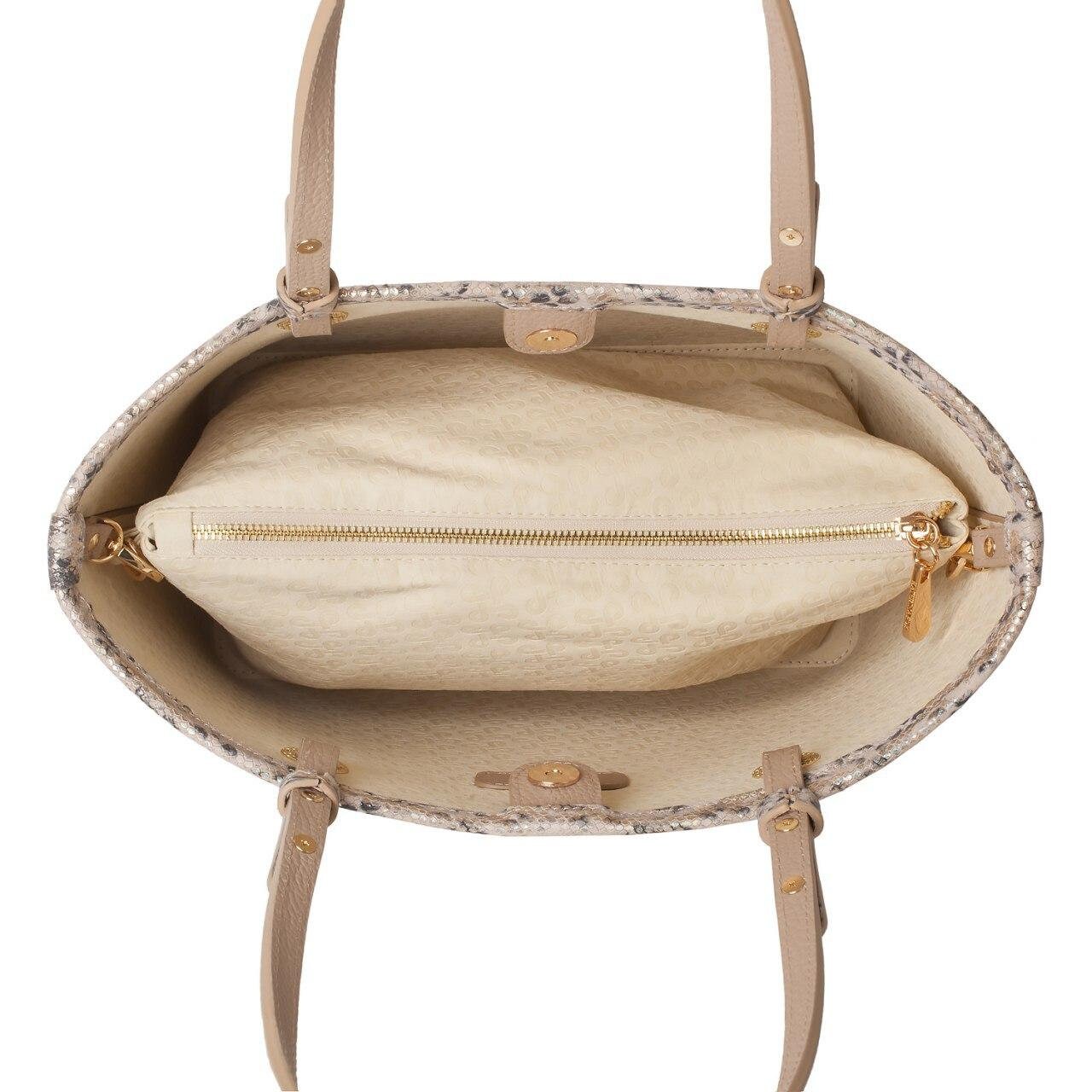 Leather Tote Bag, Beige Leather Tote Bag, Women's Leather Tote Bag KF-3467