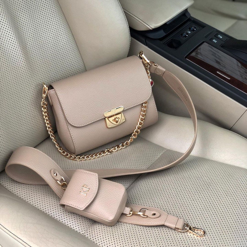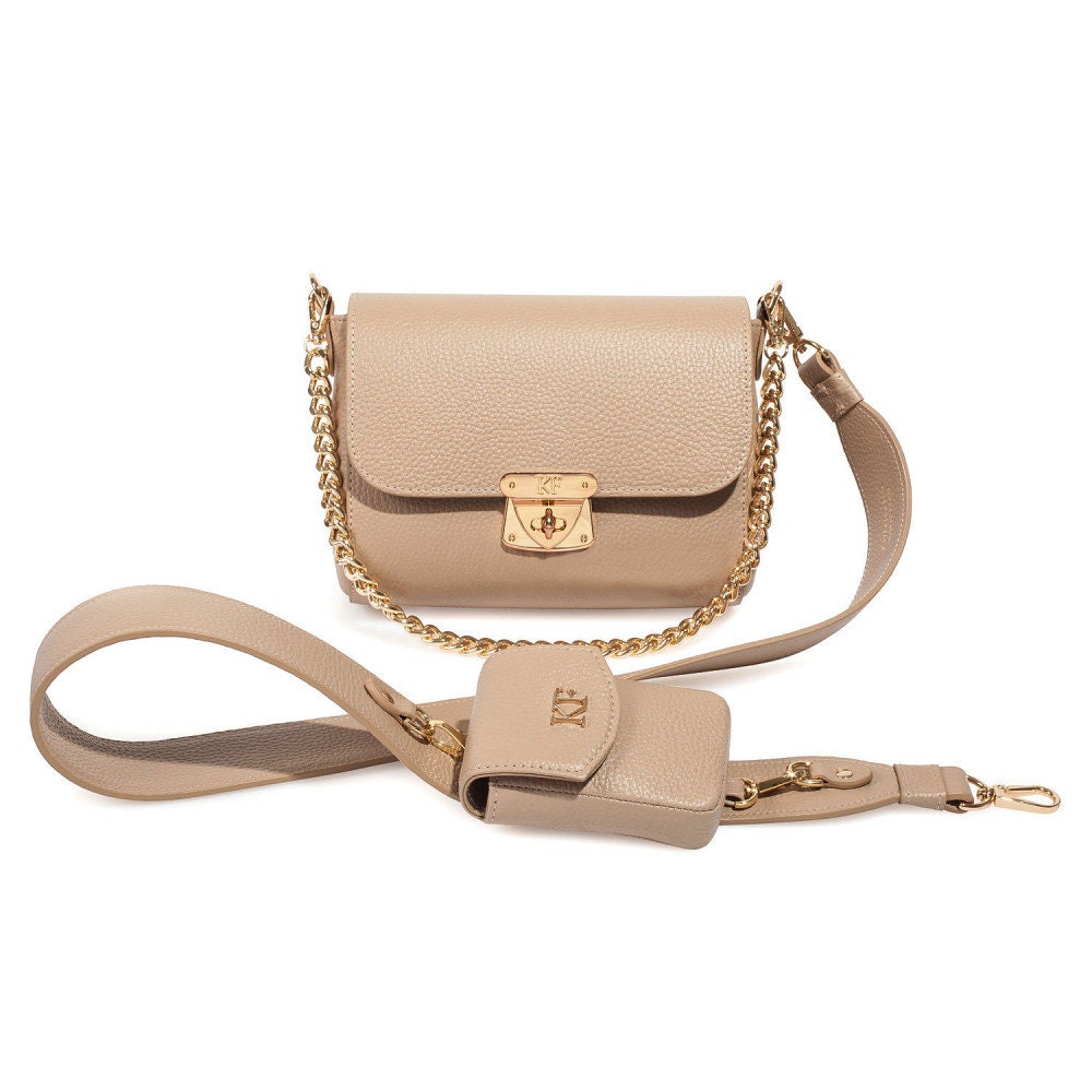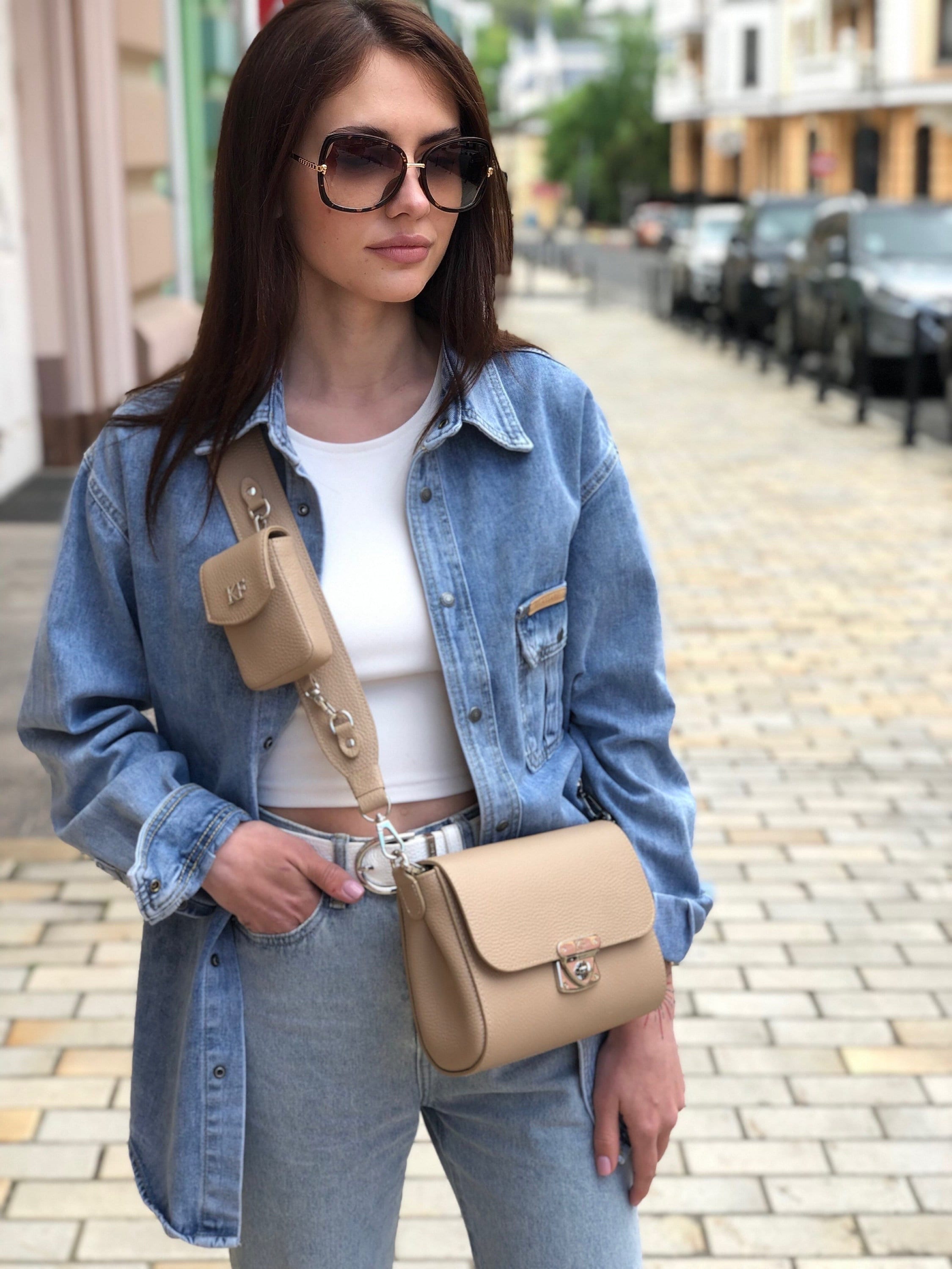Bleige genuine leather woman banana bag from Ukrainian designer Katerina Fox. Fashionable and elegant modern bag KF for bright girls and women. This bag is able to attract attention and highlight your exquisite taste. Inside the bag is one large compartment and a convenient zippered pocket for small items that closes the bag on the zipper.
