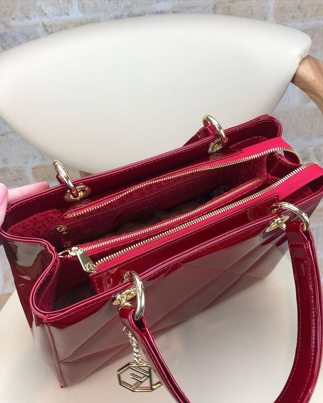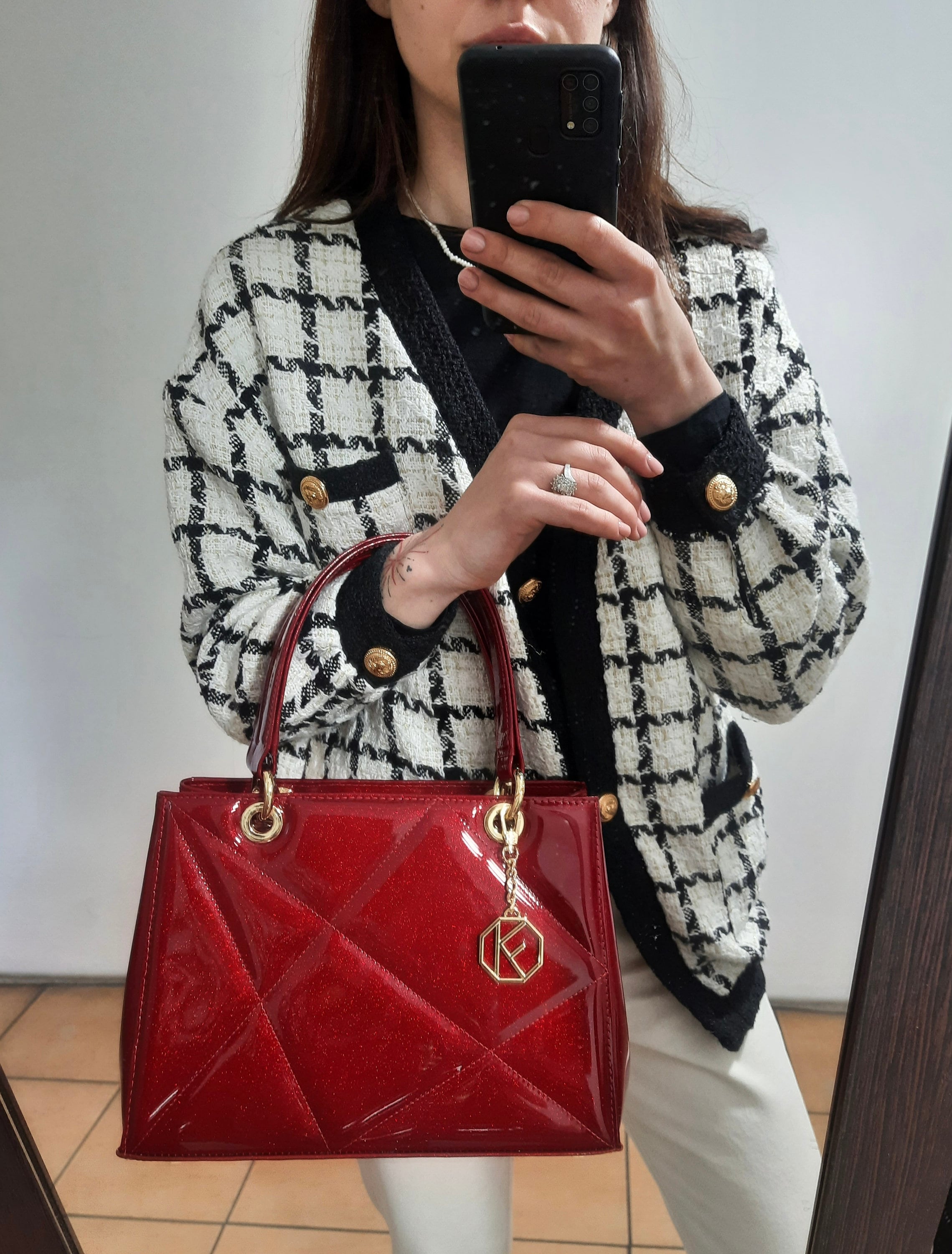 Patent Leather Top Handle Bag, Red Leather Handbag Top Handle, Women's Leather Bag KF-5000